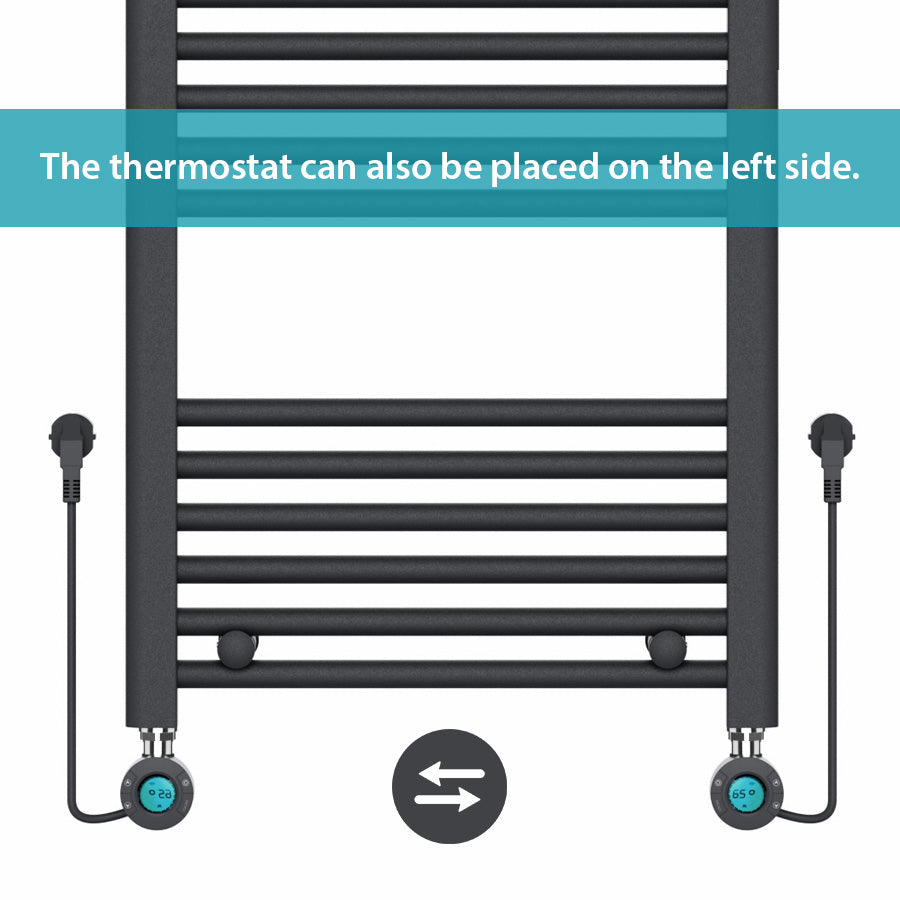 Deze radiator is ook verkrijgbaar in verschillende afmetingen, zodat hij perfect past in elke ruimte, groot of klein. De digitale thermostaat zorgt voor nauwkeurige temperatuurregeling, zodat u altijd de perfecte warmte heeft voor uw handdoeken.